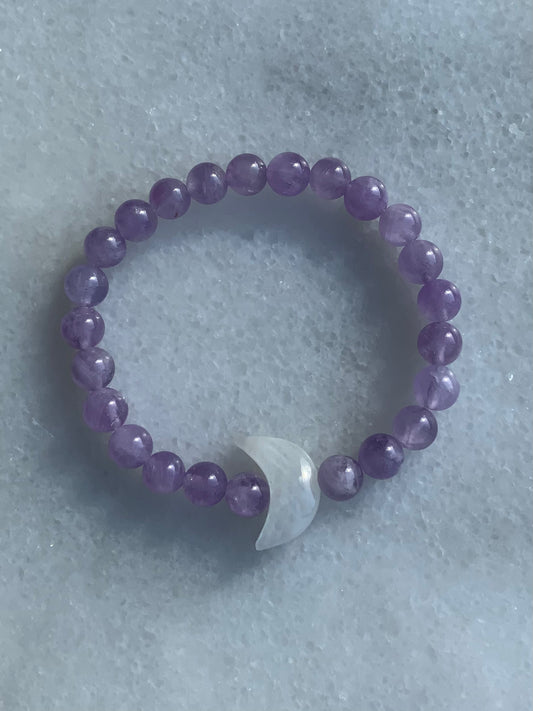 White Moonstone & Clear Quartz Stretchy Bracelet