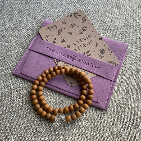 Clarity & Calm | Sandalwood With Clear Quartz | Double Wrap Crystal Healing Bracelet