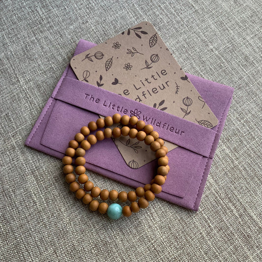 Tranquil Mind | Sandalwood With Larimar | Double Wrap Crystal Healing Bracelet